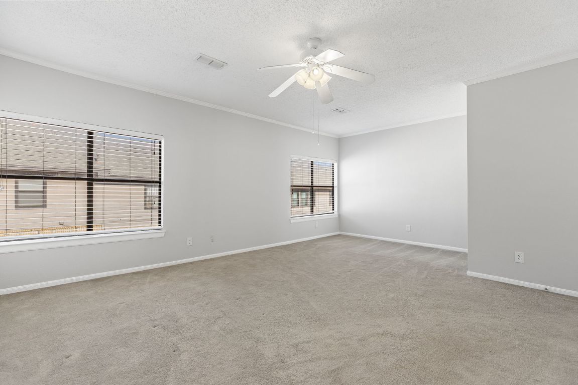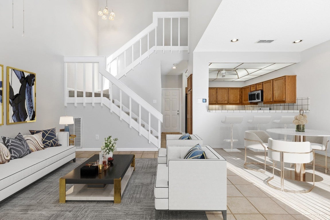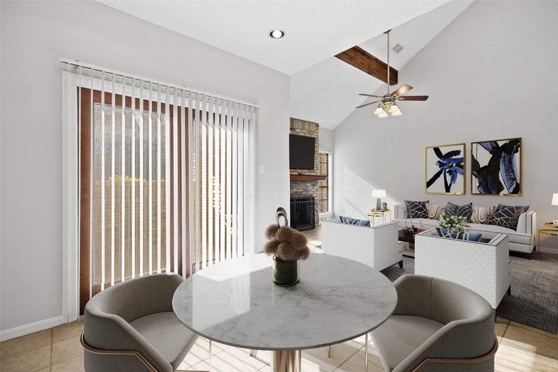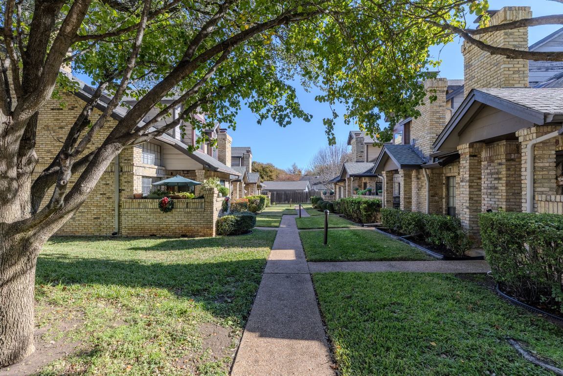 This two-story condominium offers a functional layout and convenient access to major South Austin destinations. The residence includes 2 bedrooms, 2.5 bathrooms, and an attached 2-car garage with washer and dryer located in the garage. The main level features tile flooring, vaulted ceilings, and a gas fireplace with brick surround and decorative wood accents. Large windows provide natural light throughout the living area. The kitchen is equipped with gas range, tile countertops, wood cabinetry, microwave, and dishwasher, with an open connection to the dining and living spaces. A sliding glass door opens to a front porch area within the community common space. Upstairs bedrooms are carpeted and include ceiling fans and ample closet storage. Neutral interior finishes allow flexibility for a range of design preferences. The condominium community exterior and common-area maintenance are handled by the association. Onion Creek Club is nearby and offers optional, separate membership access to a golf course, pool, fitness center, pickleball and tennis courts, restaurant, and event space. Located with easy access to I-35 and SH-45, the property is near retail, dining, and recreation options in South Austin, including greenbelt areas and neighborhood parks. Schedule a showing to visit the property and experience the layout, setting, and location in person.