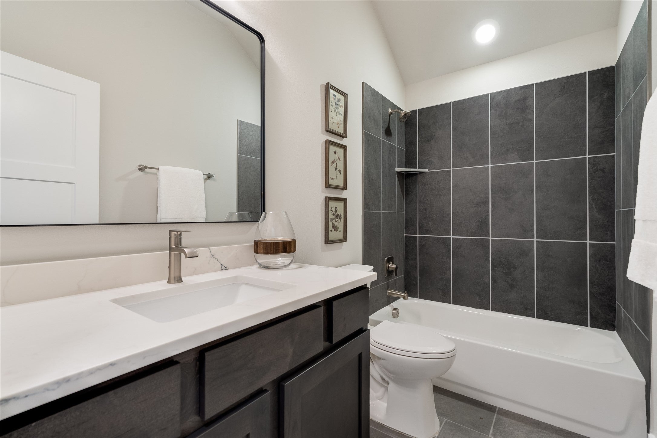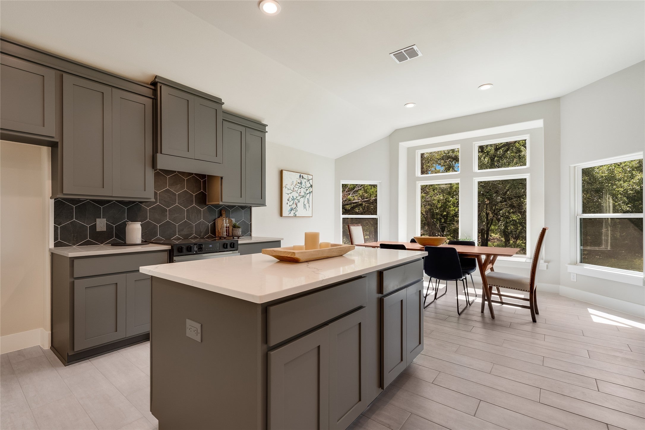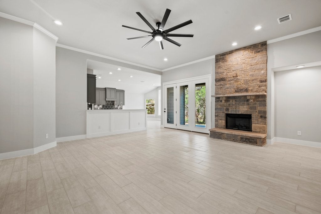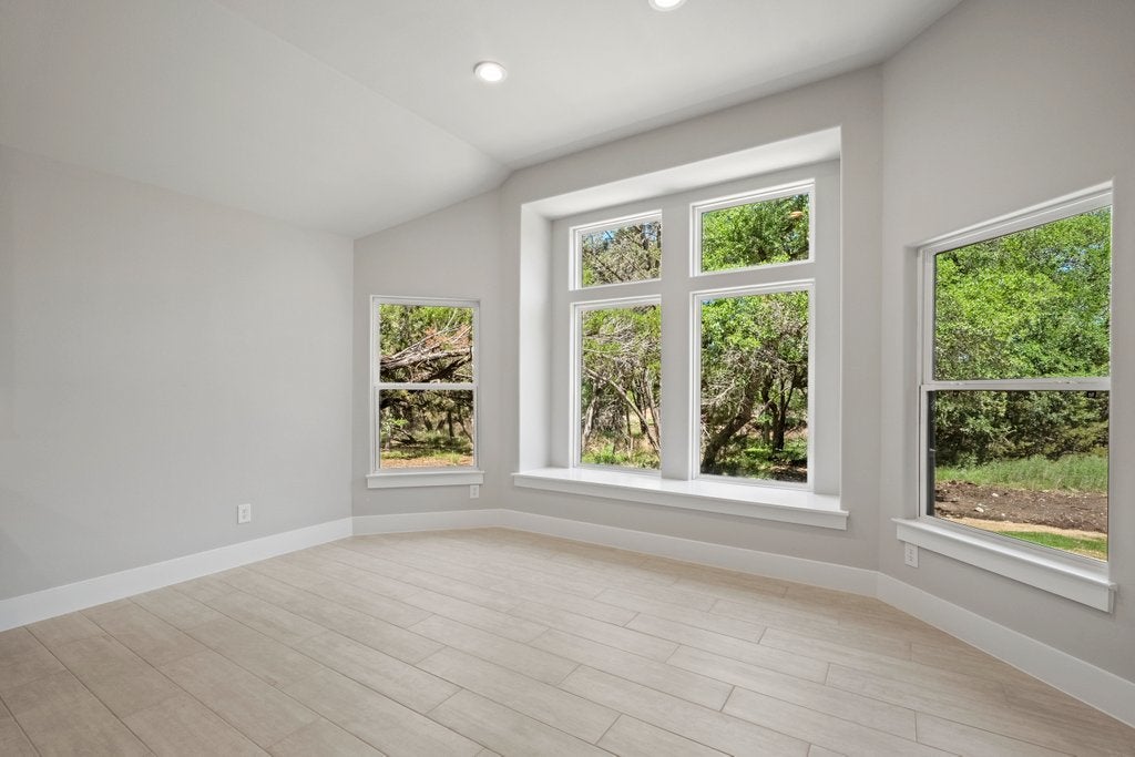 Welcome to another beautiful offering from Somerset Homes, nestled on a quiet cul-de-sac street just minutes from downtown Wimberley. This thoughtfully designed 3-bedroom, 2-bath home includes a versatile flex room—perfect for a home office, playroom, or guest space—and a spacious covered back porch ideal for relaxing or entertaining. Step inside to an open-concept floor plan with high ceilings and stylish finishes throughout. The kitchen boasts granite countertops, a large center island, stainless steel range, under counter lights, walk-in pantry, and a designer tile backsplash—perfect for both everyday living and hosting. Durable tile flooring runs through the main living areas and bathrooms, while plush carpet adds comfort in the bedrooms. The inviting living room features a masonry wood-burning fireplace, creating a cozy focal point for gatherings. The private primary suite offers a double vanity with granite counters, no fog vanity mirror, a luxurious jacuzzi tub, and a separate shower. Two secondary bedrooms are tucked away off their own hallway for added privacy. Additional highlights include front yard landscaping, upgraded recessed lights with day an night feature, high-speed Spectrum internet, and a 2-car attached garage. Foam insulation for energy efficiency and solid core doors. Don't miss the chance to live in this serene, well-appointed home just moments from Wimberley’s charming downtown shops, dining, and natural beauty. Schedule your tour today!