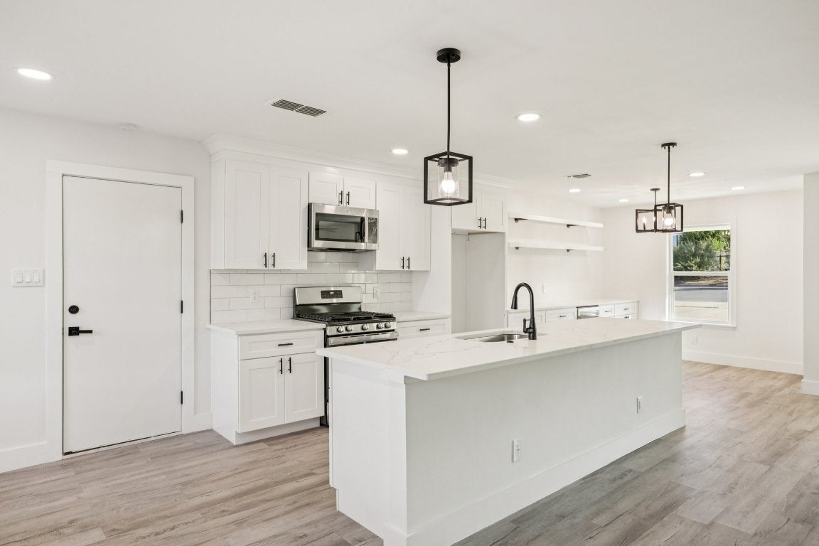Welcome to 5101 Woodmoor Dr – a fully renovated corner-lot gem in the heart of East Austin’s fastest-growing neighborhood. This stylish 3-bedroom, 2-bath home is move-in ready, offering modern upgrades and prime location in one of Austin’s most dynamic zip codes. Inside, you’ll find a bright, open-concept layout with luxury vinyl flooring, designer fixtures, and a chef-inspired kitchen featuring quartz countertops, updated cabinetry, and a built-in wine cooler. Both bathrooms have been thoughtfully remodeled with sleek, contemporary finishes. The spacious fenced backyard is perfect for entertaining, pets, or future additions. Located just off Webberville Road, this property offers incredible access to local coffee shops, restaurants, and the creative energy of East Austin—while still just minutes from downtown. The neighborhood is a mix of established residents and new development, making this a rare opportunity to own in an area poised for long-term growth. Whether you're a first-time buyer, investor, or developer, 5101 Woodmoor offers flexibility, style, and upside. Zoned SF-3, it’s ideal for future expansion or an ADU (buyer to verify). Median home values in 78721 are rising, and this turnkey home offers immediate livability plus future potential. Schools in the area are improving, with access to charters and magnet programs nearby. Enjoy urban living with a neighborhood feel—where your morning coffee, weekend brunch, and next favorite mural are just around the corner. Don’t miss your chance to own a piece of East Austin’s transformation. Schedule a private tour today!