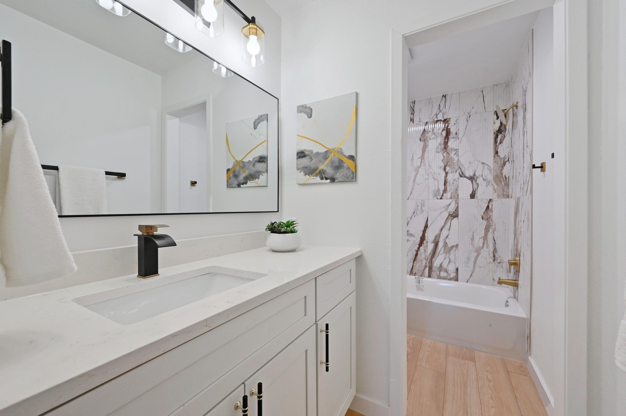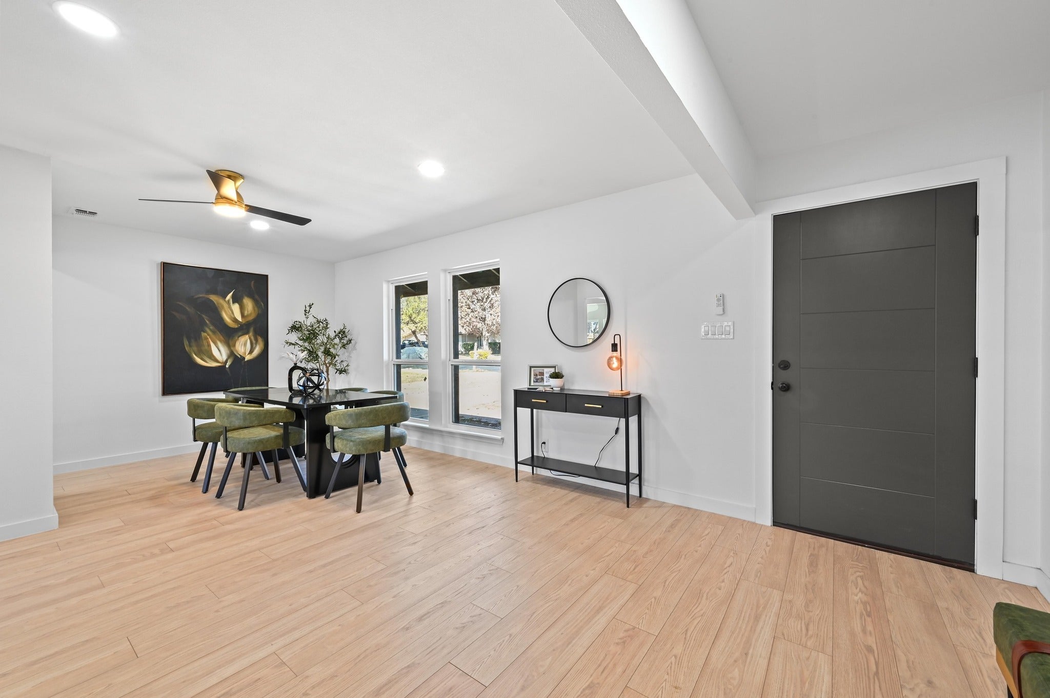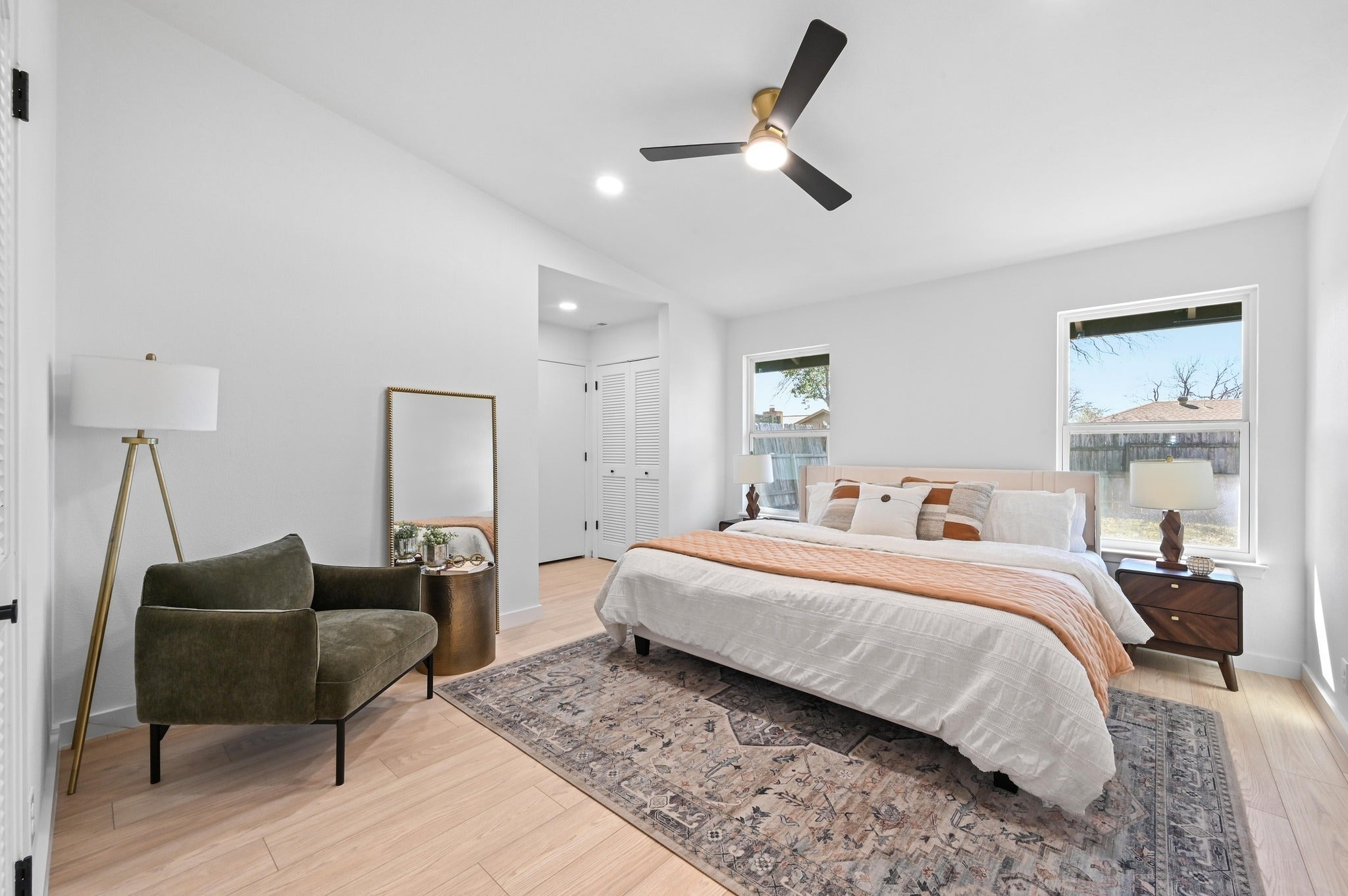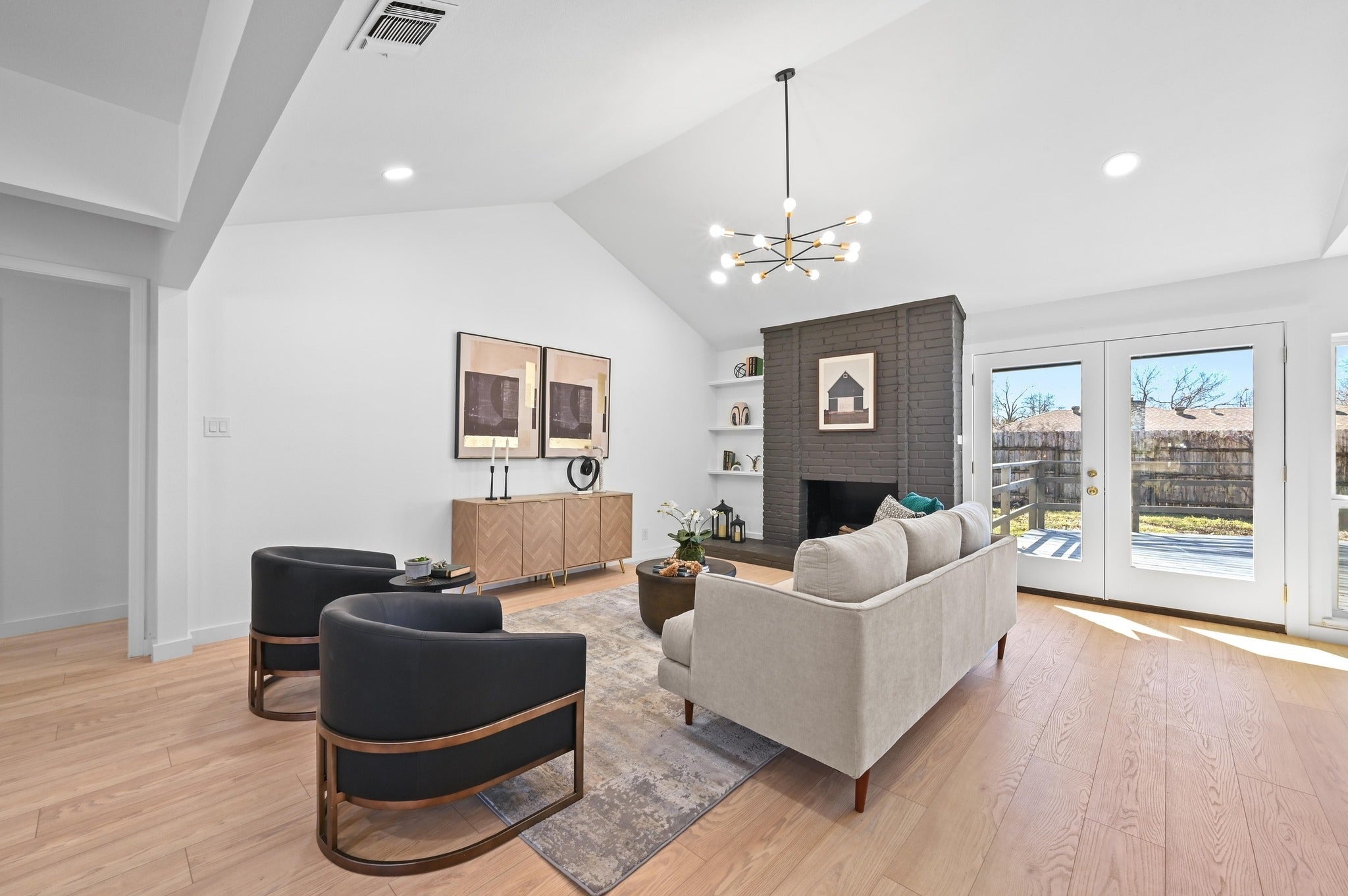 This North Central Austin home sits on a spacious lot and was just remodeled in 2025/2026 with quality updates and thoughtful finishes throughout. The single-story layout offers 4 bedrooms and 3 full bathrooms, including two primary suites that are well suited for guests or multigenerational living. Luxury vinyl plank flooring runs throughout the home, paired with quartz countertops and custom cabinetry in the kitchen and bathrooms. The open kitchen connects seamlessly to the living area and features a breakfast bar, quartz counters, and new appliances. The main living room is bright and inviting, offering vaulted ceilings, a floor-to-ceiling fireplace, and built-in bookshelves that create a comfortable, open focal point. Fresh interior paint, along with updated light fixtures and ceiling fans, enhances the modern feel throughout. The bathrooms feature beautifully tiled surrounds, walk-in showers, and seamless glass enclosures. Additional upgrades include new doors, trim, and hardware, updated plumbing fixtures, a tankless water heater, blown-in attic insulation for improved energy efficiency, LOW-E insulated windows for year-round comfort, and added closets for extra storage. Outside, the freshly painted exterior and large backyard with a spacious deck offer plenty of room for outdoor enjoyment. Conveniently located near great restaurants, HEB, The Domain, Q2 Stadium, The Arboretum, and major employers, this home is one you won’t want to miss.