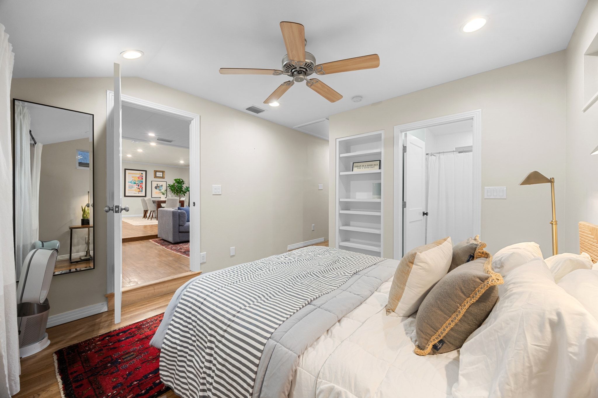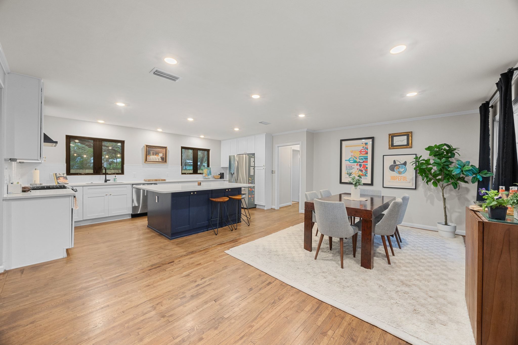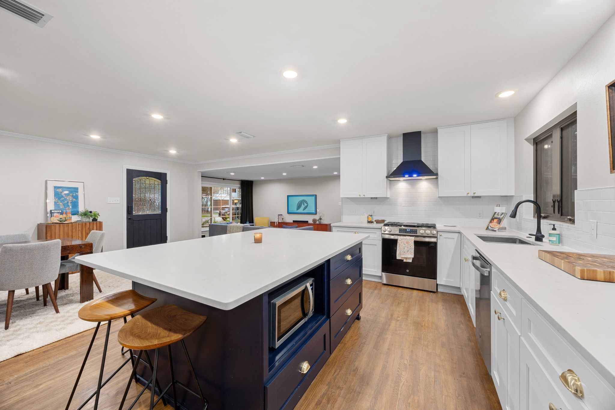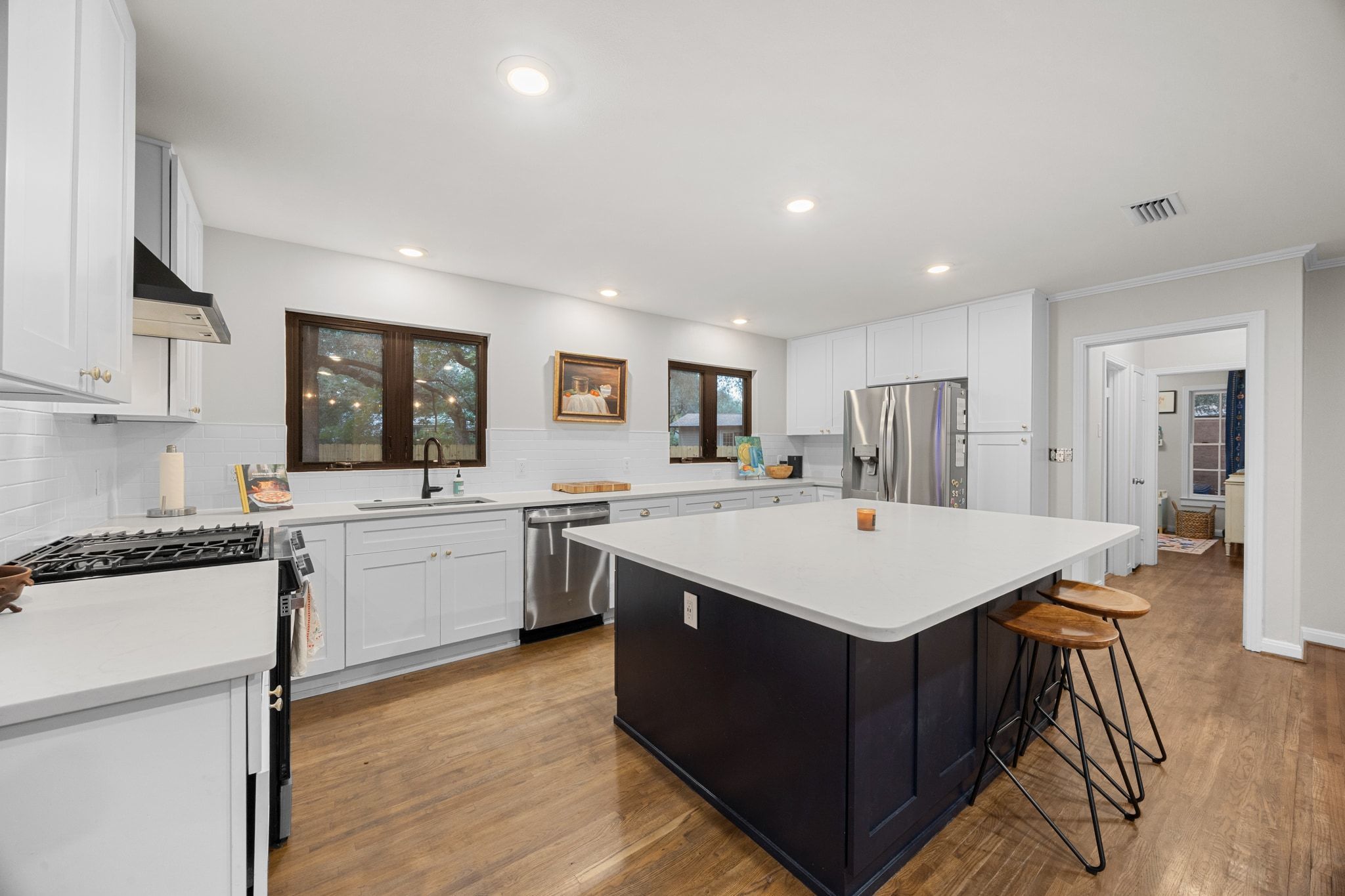 Welcome to 2604 W 49th 1/2 Street - a beautifully updated single-story home nestled on one of the most charming, tree-lined streets between Allandale and Rosedale. Here, classic Austin character meets modern comfort in a location that places you minutes from everything you love about the city. Inside, the wide-open floor plan immediately draws you in, with hardwood floors, fresh lighting, and thoughtfully chosen finishes creating a warm, effortless flow. The renovated kitchen is both stylish and functional, featuring quartz countertops, shaker-style cabinetry, stainless steel appliances, and an oversized island that invites conversation, cooking, and everyday living. The primary bedroom is a special retreat, complete with multiple built-in bookshelves and a large window seat overlooking the backyard. Two additional bedrooms offer plenty of flexibility - whether you need dedicated sleeping spaces, a creative studio, a serene office, or a cozy media room. The layout adapts easily to your lifestyle, making the home feel both practical and personal. Step out back and discover a private oasis under a canopy of mature trees. The lush yard, stone patio, and wood deck create multiple outdoor “rooms” perfect for morning coffee, al fresco dinners, or long evenings with friends strung under the lights. It’s shaded, peaceful, and surprisingly spacious - a rare find in central Austin. And the location? Truly unbeatable. Tucked onto a pristine street with a neighborhood feel, you’re just 10 minutes to Downtown, 10 minutes to Mount Bonnell, and 10 minutes to The Domain. Local cafés, parks, boutique shops, and historic central Austin charm surround you in every direction. Thoughtfully updated, move-in ready, and ideally located - this is the kind of Austin home people wait for. Don’t miss it.