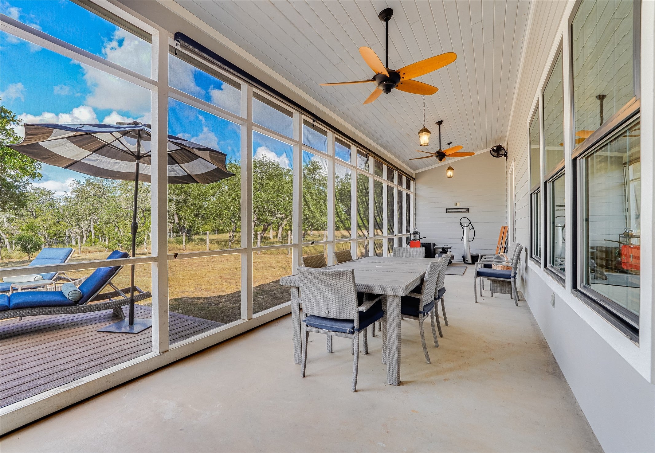 Tucked away in the desirable Big Sky Ranch subdivision, this inviting home offers privacy while being just minutes from all that Wimberley has to offer. Thoughtful upgrades and Hill Country charm combine to create a truly special property. Step inside to find shiplap accents, upgraded light fixtures, and ceiling fans throughout. The open floor plan features a spacious living room with a wood-burning fireplace and a chef’s kitchen complete with island, deep farm sink, large pantry, upgraded stainless appliances, propane Wolf multi-burner range, and KitchenAid refrigerator. A generous utility room is conveniently located just off the kitchen. Designed for comfort, the home offers three spacious bedrooms, each with a private bath, plus a guest half bath. The primary suite boasts a clawfoot soaking tub, walk-in shower, and large walk-in closet. Wood floors run throughout the home, with tile in all bathrooms. Need a quite place for an office, craft room or game room; head out to the bonus room over the garage. Home has spray foam insulation to help keep those electric bills low. Enjoy the outdoors year-round from the large covered front porch or screened back porch, both with ceiling fans to keep you cool. Or step out on your Trex deck into the hot tub. The fenced front and back yards make this a pet-friendly property, while majestic oak trees provide shade and beauty. Additional features include: Oversized 2-car garage with adjoining workshop; Generac whole-house generator; Starlink internet or Spectrum (for high speed internet); Agricultural exemption (via cattle) for significant tax savings; and a firepit area. Located within the highly sought-after Wimberley ISD, this property offers both convenience and tranquility—an ideal place to call your forever home.