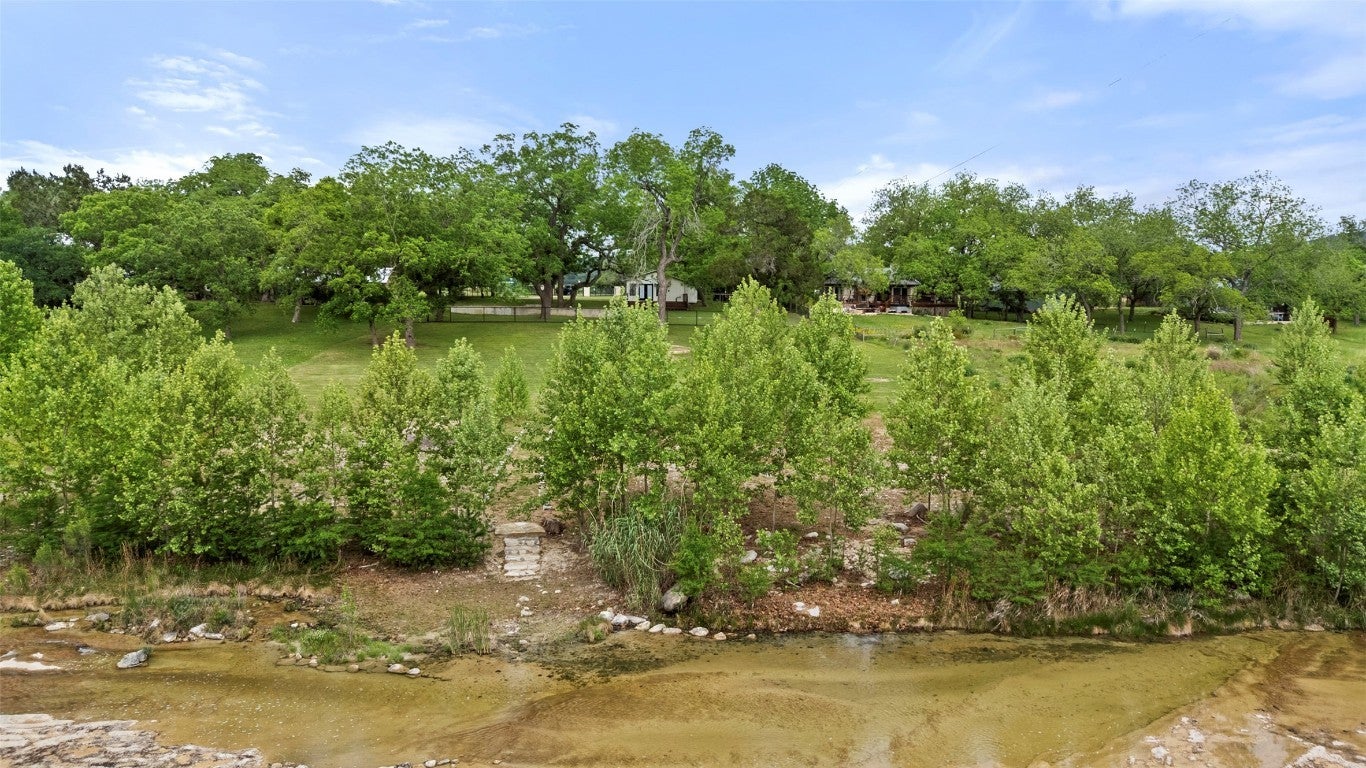 A riverside Escape in Wimberley! Discover the perfect blend of privacy, natural beauty, and modern comfort at 2410 Flite Acres Road in Wimberley, Texas. This inviting 1-bedroom, 1-bathroom home offers 858 square feet of contemporary living space, thoughtfully placed on a peaceful 1.67-acre lot with 200 feet of sought-after Blanco River frontage.Built in 2020, the home features vaulted ceilings, stylish modern finishes, and generous outdoor living areas ideal for relaxing or entertaining beneath mature shade trees. A pre-poured foundation slab offers the potential for a future patio, guest house, or expanded outdoor space. Natural cliffs across the river enhance the property’s seclusion and provide a beautiful backdrop. Located just minutes from the heart of downtown Wimberley, this property is well-suited as a weekend retreat, a cozy full-time residence, or a guest house while you build your dream home. With utilities in place and riverfront properties becoming increasingly scarce at this price point, this is truly an exceptional opportunity to own a piece of the Wimberley lifestyle.