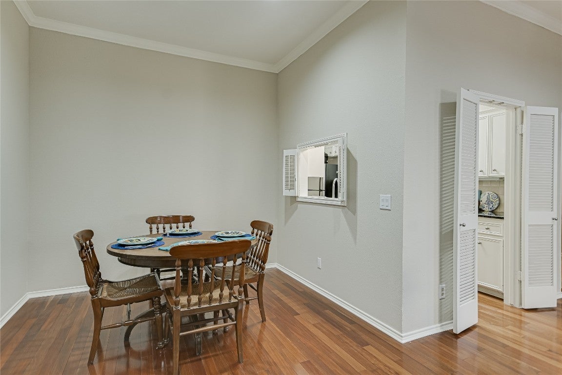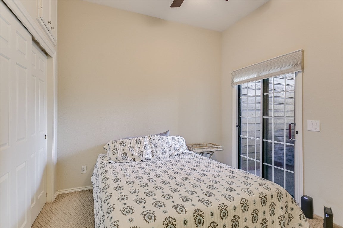 Fabulous single-level 3-bedroom downtown condo showcasing wood floors, soaring ceilings, and a light-filled living area with wood-burning fireplace—ideal for both everyday comfort and entertaining. The spacious primary suite opens to a private covered balcony overlooking the tranquil community pool, offering a true urban retreat. Guest bedrooms also enjoy access to a covered balcony, perfect for quiet mornings or evening unwinding. Residents benefit from a beautifully maintained pool and two assigned parking spaces—one covered, one uncovered. Just minutes from Lady Bird Lake, premier dining, shopping, and the best of downtown Austin living.